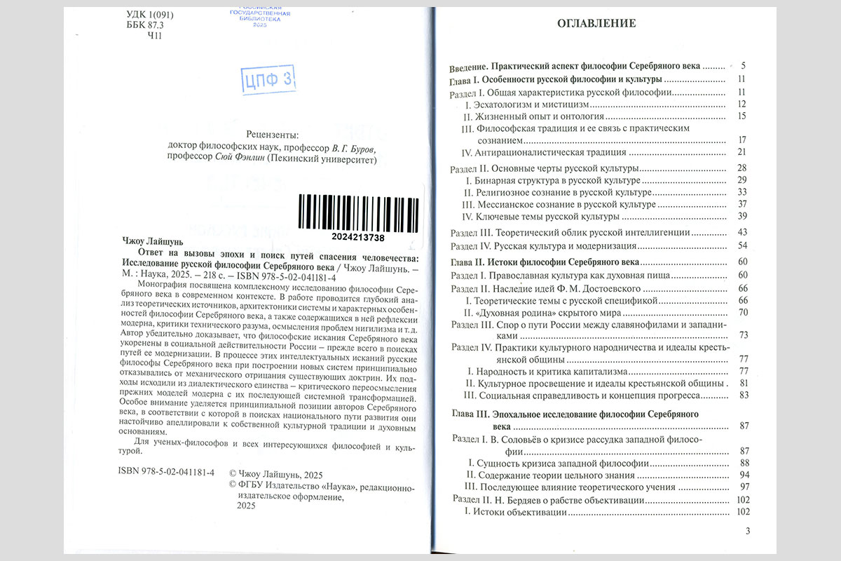 Чжоу Лайшунь. Ответ на вызовы эпохи и поиск путей спасения человечества: исследование русской философии Серебряного века. Москва, 2025