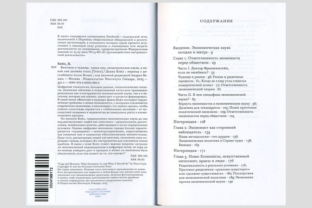 Койл, Диана. Винтики и чудища: какая она, экономическая наука, и какой она должна стать. Москва, 2025