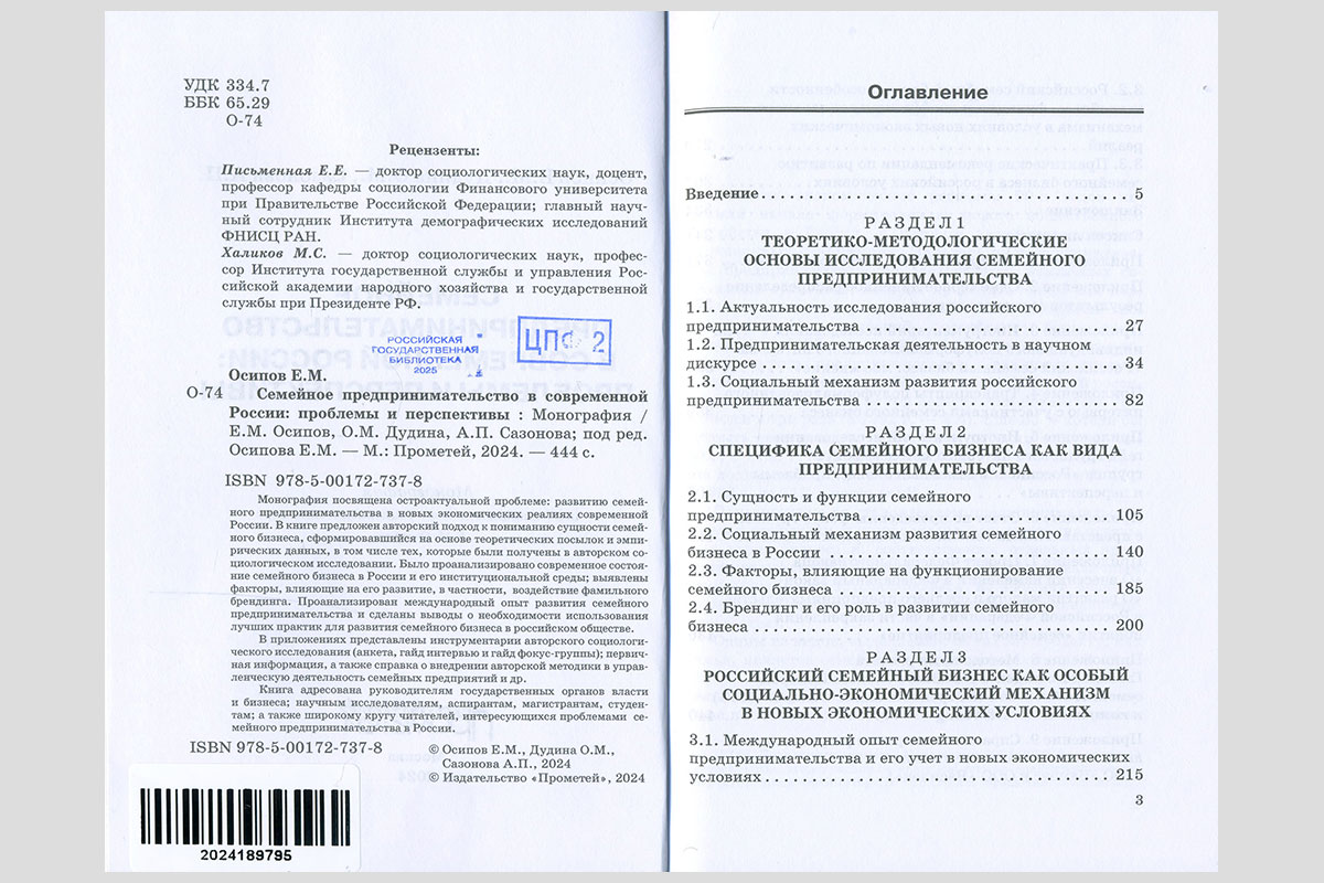 Осипов, Егор Михайлович. Семейное предпринимательство в современной России: проблемы и перспективы. Москва, 2024