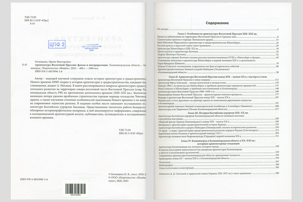 Белинцева, Ирина Викторовна. Архитектура Восточной Пруссии: факты и интерпретации. Калининградская область. Калининград, 2025