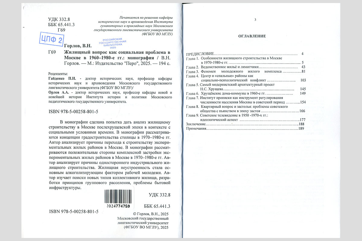 Горлов, Владимир Николаевич. Жилищный вопрос как социальная проблема в Москве в 1960–1980-е гг. Москва, 2025