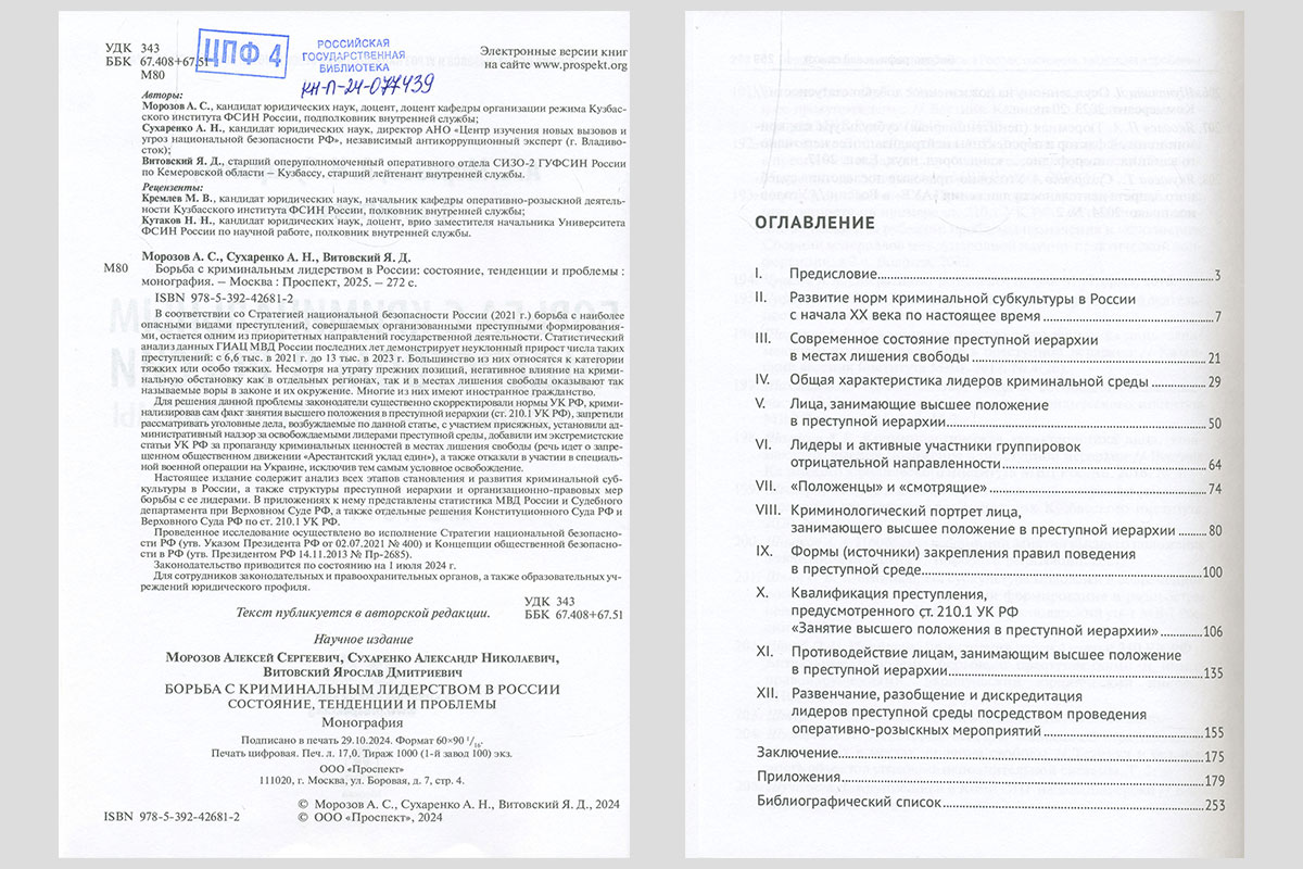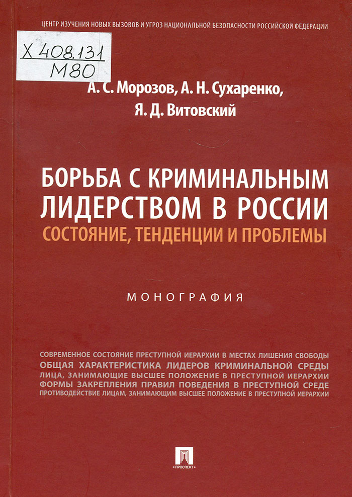 Морозов, Алексей Сергеевич. Борьба с криминальным лидерством в России: состояние, тенденции и проблемы. Москва, 2025
