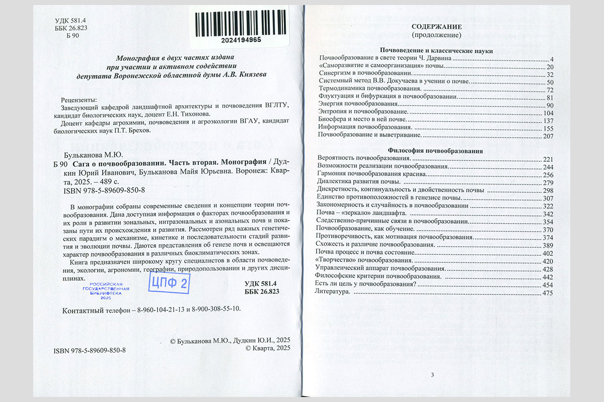 Дудкин, Юрий Иванович. Сага о почвообразовании. Воронеж, 2025. Часть 2