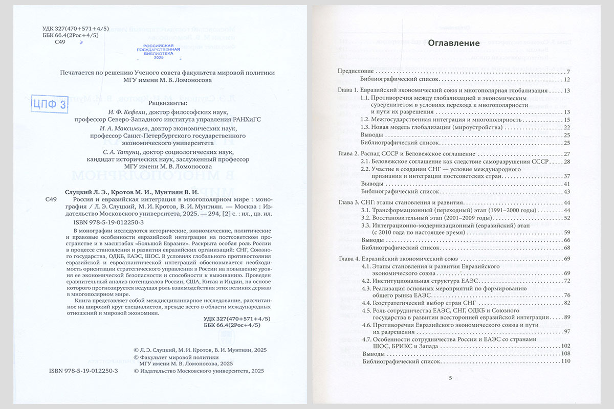 Слуцкий, Леонид Эдуардович. Россия и евразийская интеграция в многополярном мире. Москва, 2025