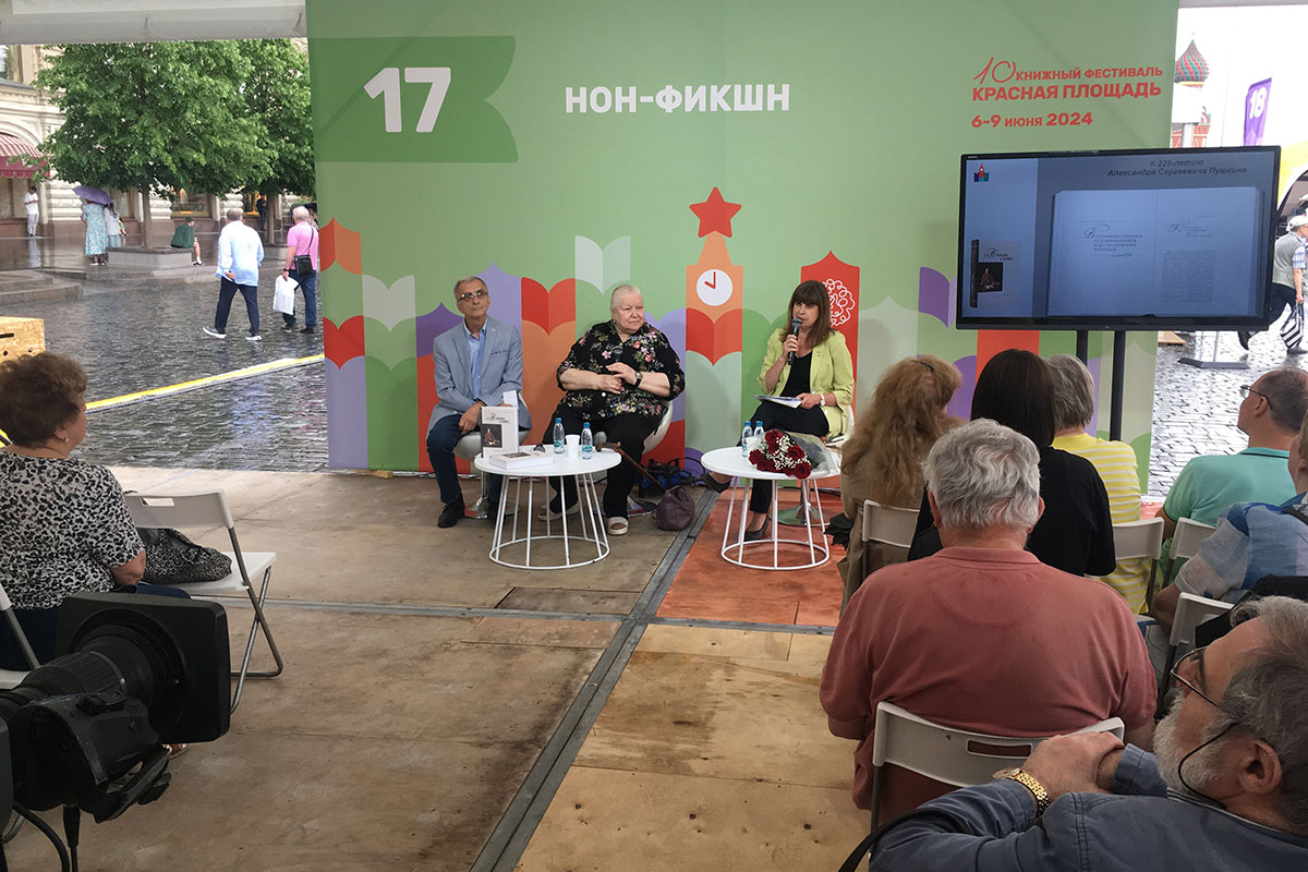 Презентация сборника «А. С. Пушкин и книга», вобравшего в себя материалы научной конференции, проходила в павильоне 17 «Нон-фикшн». Издание, адресованное всем любителям творчества поэта, вызвало большой интерес. Несмотря на начавшийся дождь, собралась многолюдная аудитория.