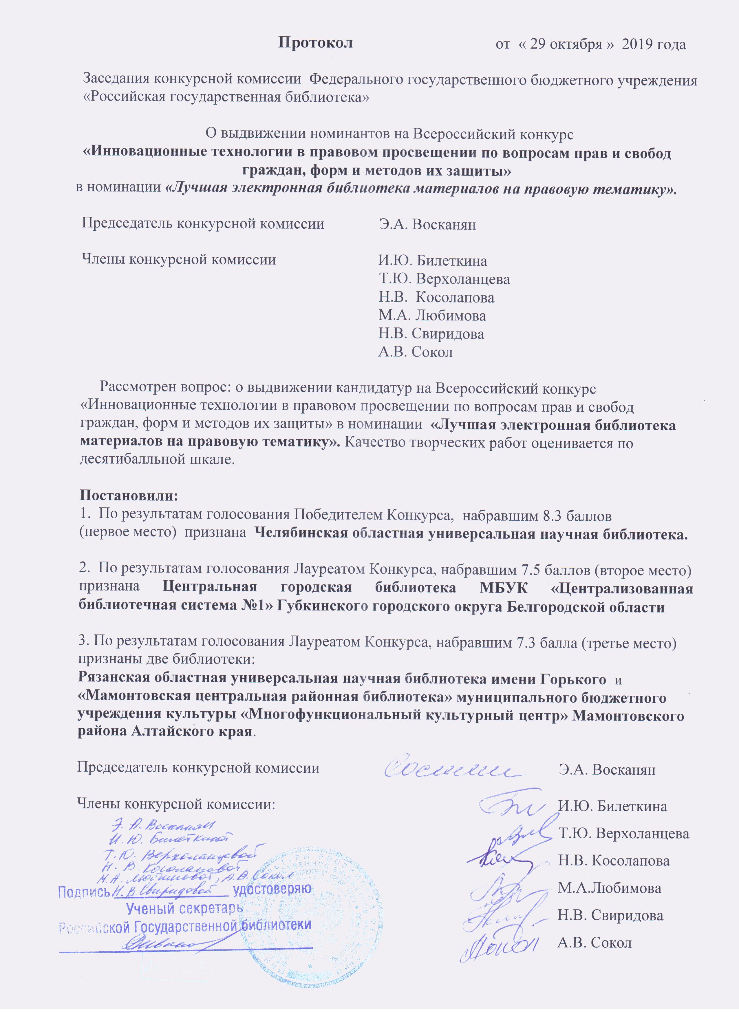 По решению жюри, в котором состояли сотрудники отдела официальных и нормативных изданий Российской государственной библиотеки, в данной номинации места распределились следующим образом.