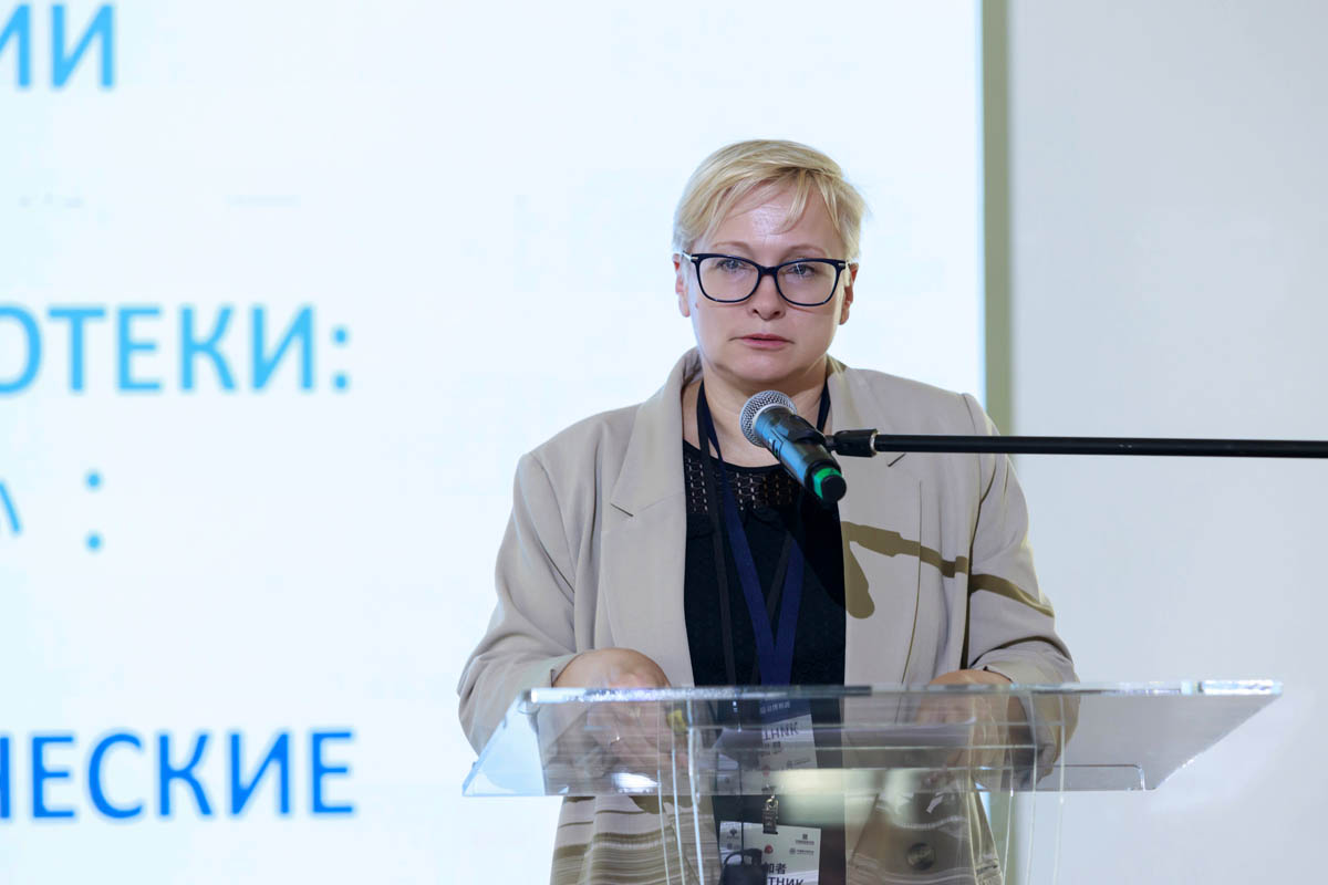С докладом о значимости и приоритетных направлениях работы российско-китайского библиотечного союза выступила Оксана Праскова, директор Амурской областной научной библиотеки имени Н. Н. Муравьёва-Амурского.