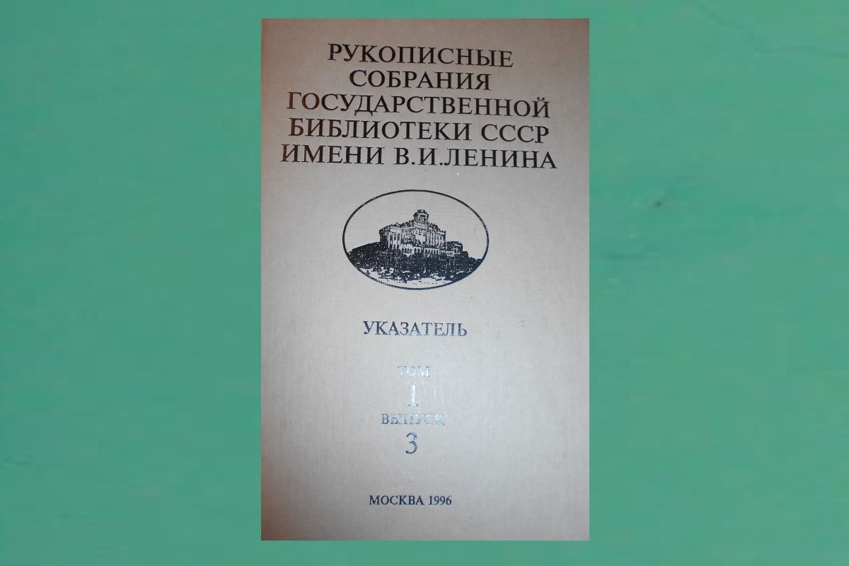 • Рукописные собрания Государственной библиотеки СССР имени В. И. Ленина : Указатель. М. Том 1. Выпуск 3. Москва, 1996