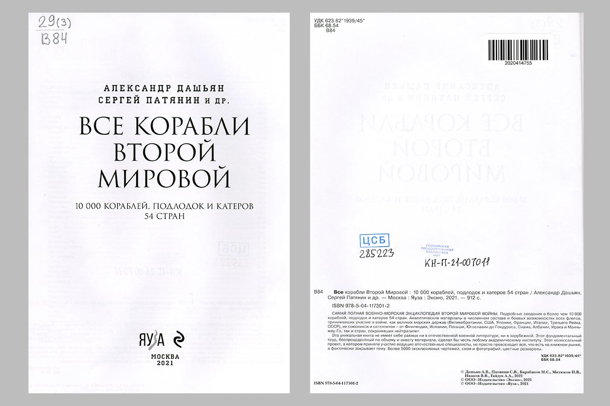 Дашьян, Александр Владимирович. Все корабли Второй мировой: 10 000 кораблей, подлодок и катеров 54 стран. Москва, 2021.
