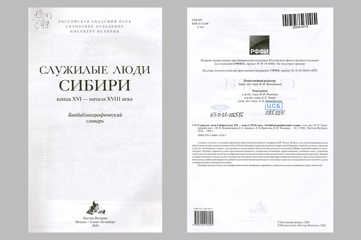 Служилые люди Сибири конца XVI — начала XVIII века: биобиблиографический словарь. Москва; Санкт-Петербург, 2020.