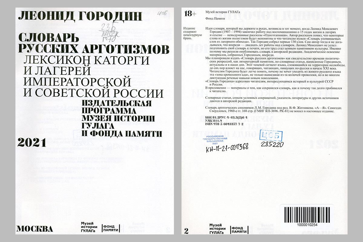 Городин, Леонид Моисеевич. Словарь русских арготизмов. Лексикон каторги и лагерей императорской и советской России. Москва, 2021.