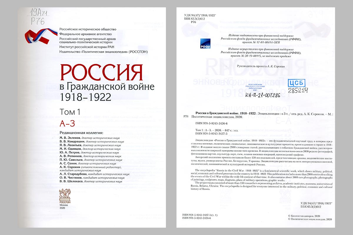 Россия в Гражданской войне 1918—1922: энциклопедия в трех томах. Москва, 2020—.