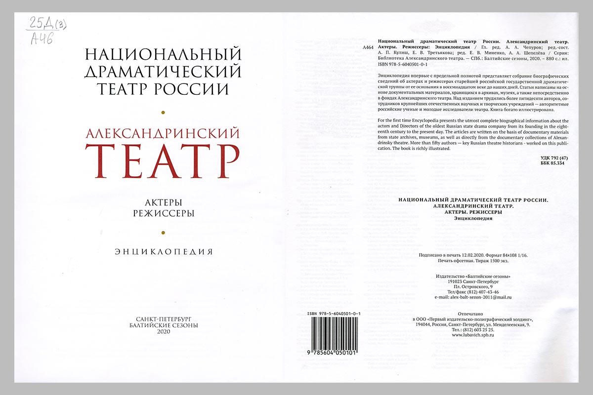 Национальный драматический театр России. Александринский театр. Актеры. Режиссеры: энциклопедия. Санкт-Петербург, 2020.