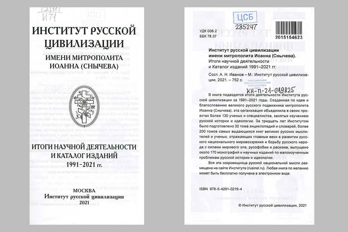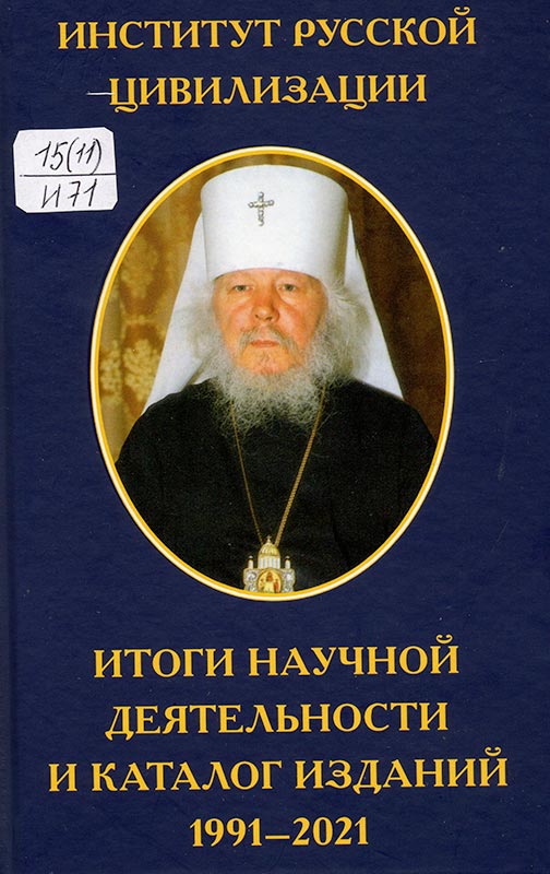 Институт русской цивилизации имени Митрополита Иоанна (Снычева) (Москва). Итоги научной деятельности и каталог изданий 1991—2021 гг. Москва, 2021.