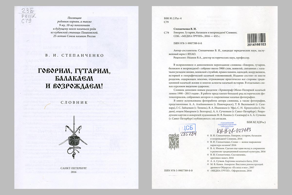 Степанченко, Валерий Иванович. Говорим, гутарим, балакаем и возрождаем!: словник. Санкт-Петербург, 2016.