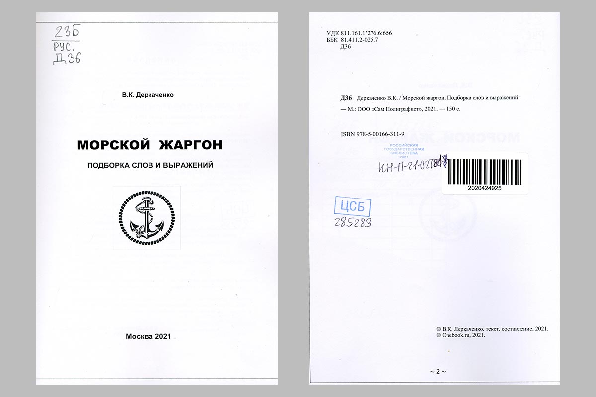 Деркаченко, Виктор Константинович. Морской жаргон. Подборка слов и выражений. Москва, 2021.