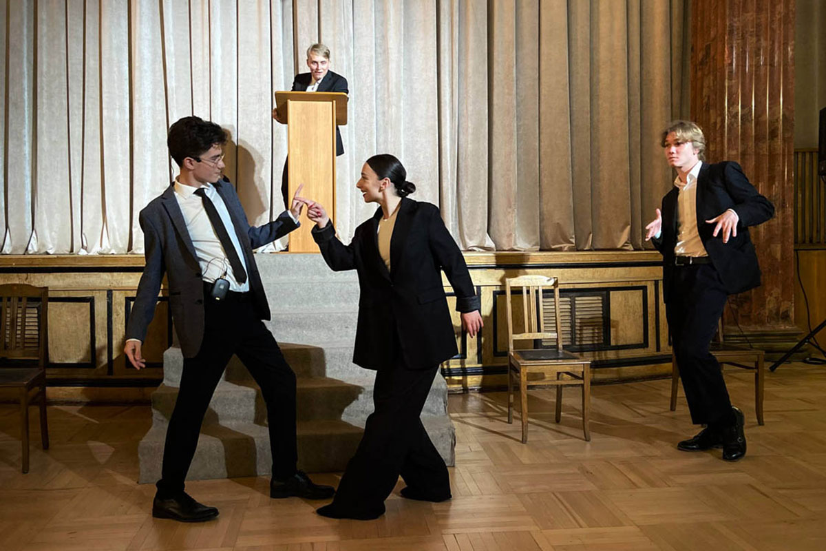 С первых минут спектакля зал охватило чувство глубокой сопричастности к предмету. Актёры искусно смогли передать атмосферу тяжёлых литературных трудов и поисков смысла слова. Каждая сцена была тщательно выстроена, однако сохраняла дух импровизации, что позволило создать уникальное пространство для диалога между артистами и зрителями.