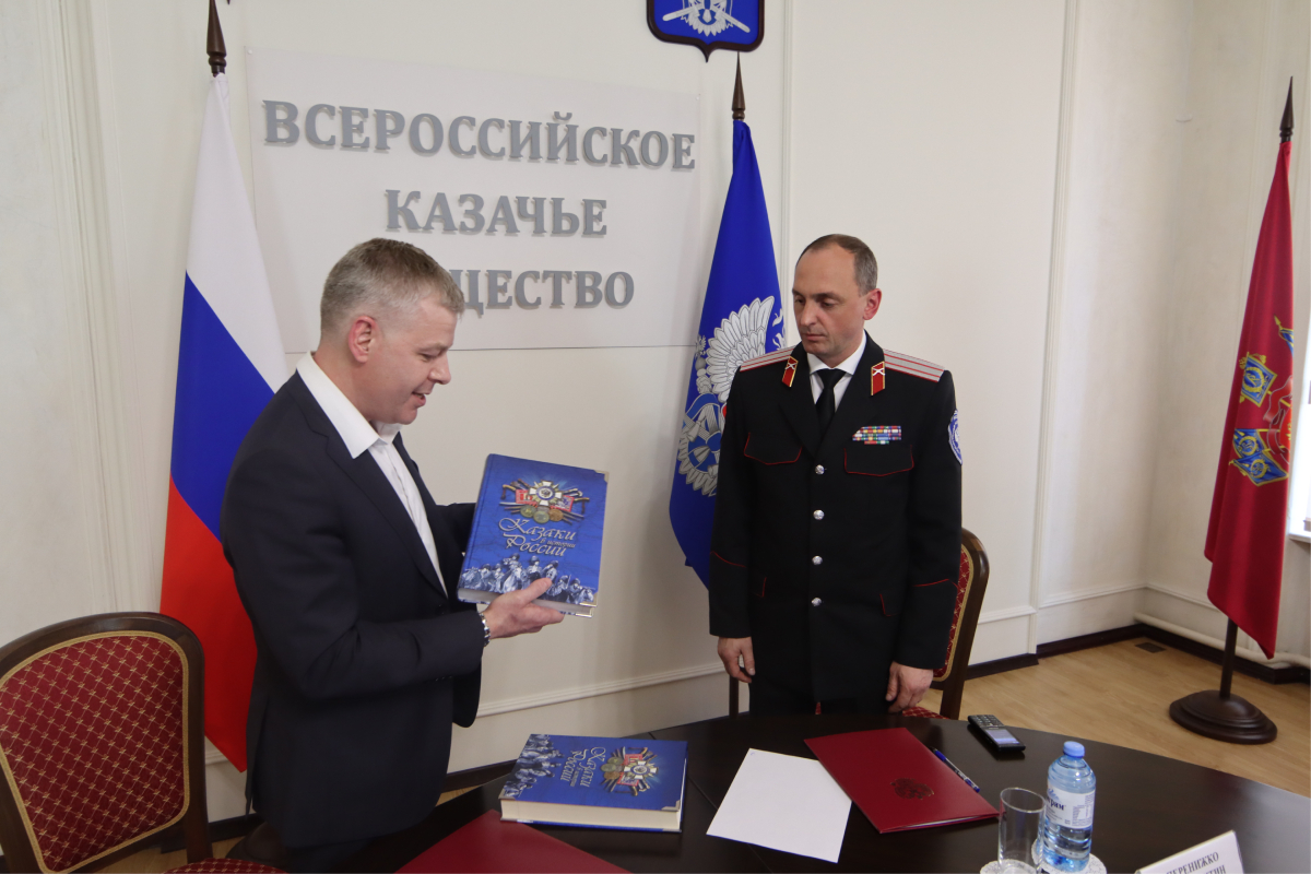 В соответствии с достигнутыми договоренностями казачьего генерала, атамана Всероссийского казачьего общества Николая Долуды и генерального директора Российской государственной библиотеки Вадима Дуды 8 июня было подписано соглашение о сотрудничестве и взаимодействии между организациями.