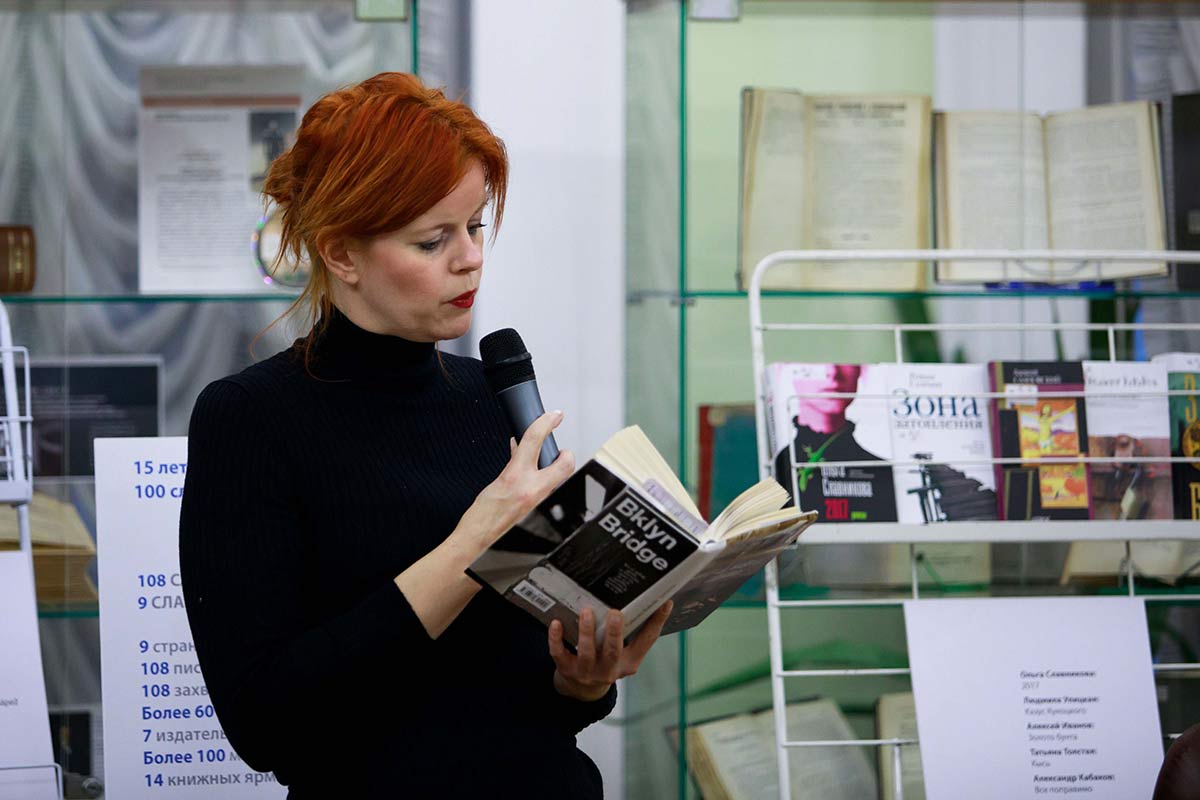Габриэла Бабник прочитала отрывок из своей книги на словенском языке, затем этот же отрывок на русском языке представила переводчик, поэт и редактор Жанна Перковская.