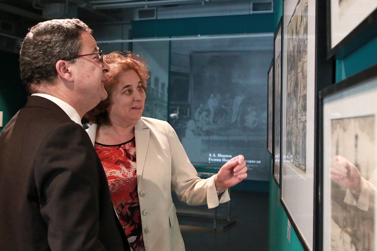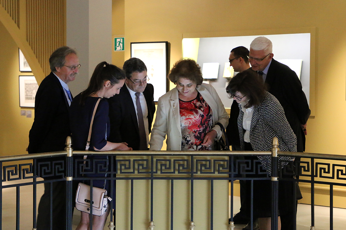 Делегация посольства Швейцарии посетила выставку, проходящую в Ивановском зале — «Александр II. Воспитание просвещением». С выставкой их знакомила Наталья Юрьевна Самойленко, руководитель проекта.