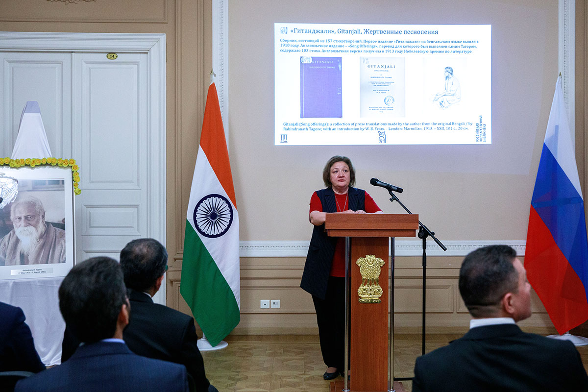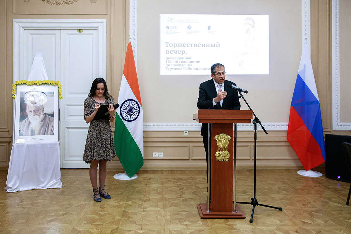 «Я рад, что в Российской государственной библиотеке хранится очень богатая коллекция изданий Рабиндраната Тагора. Он человек одарённый, оказавший влияние на людей по всему миру. И в России его знают давно: переводы до революции редактировал Иван Бунин, а в тридцатые годы ими занимались Борис Пастернак и Анна Ахматова», — отметил в своём приветственном слове Полномочный Посол Республики Индия в России Паван Капур.