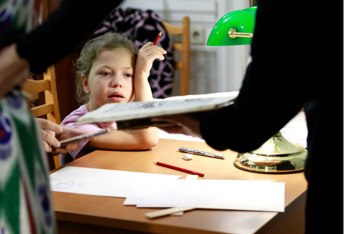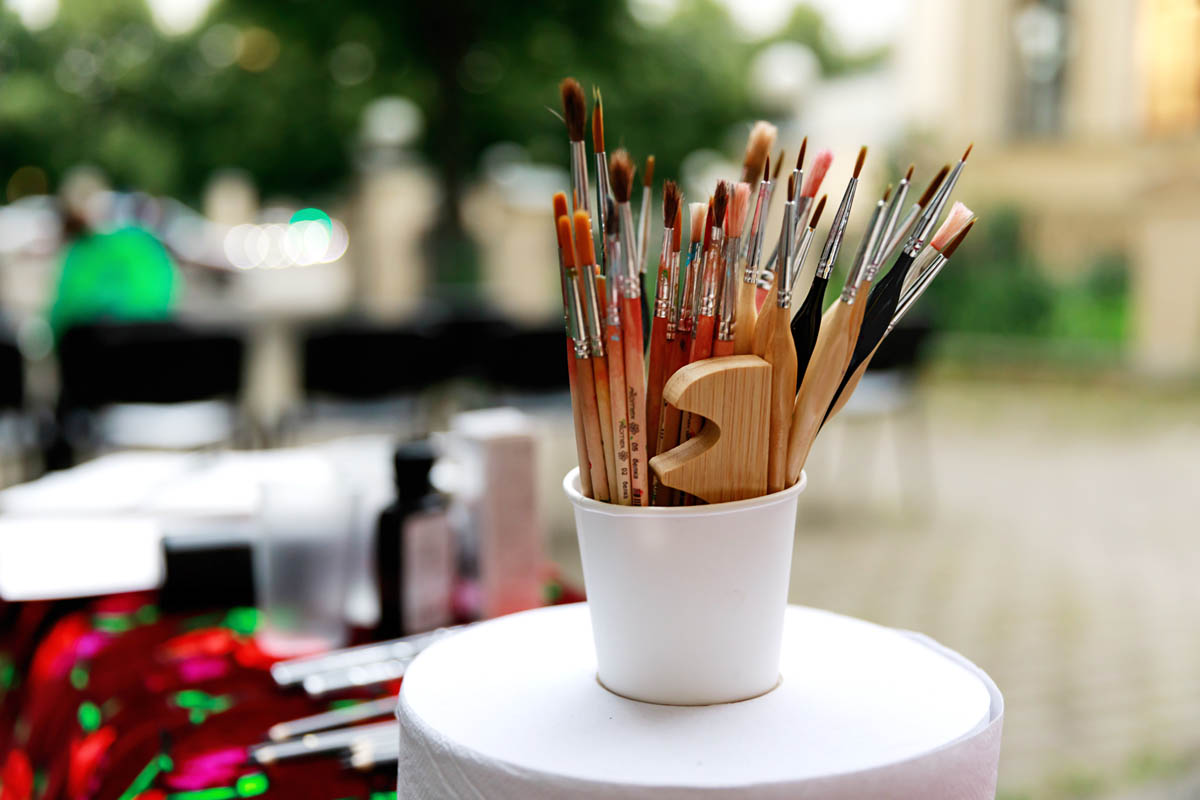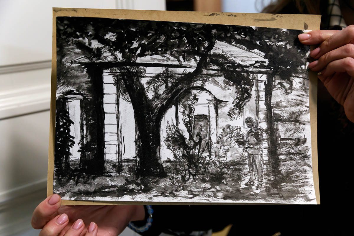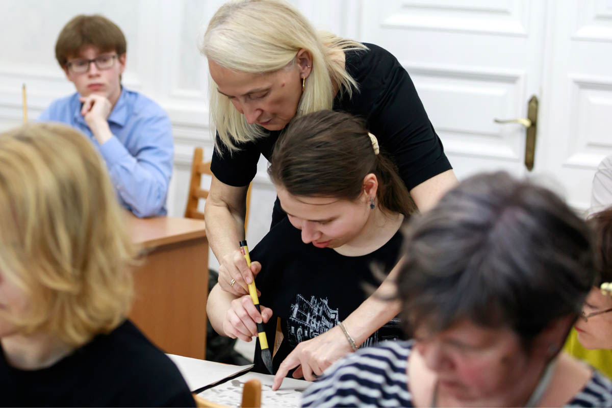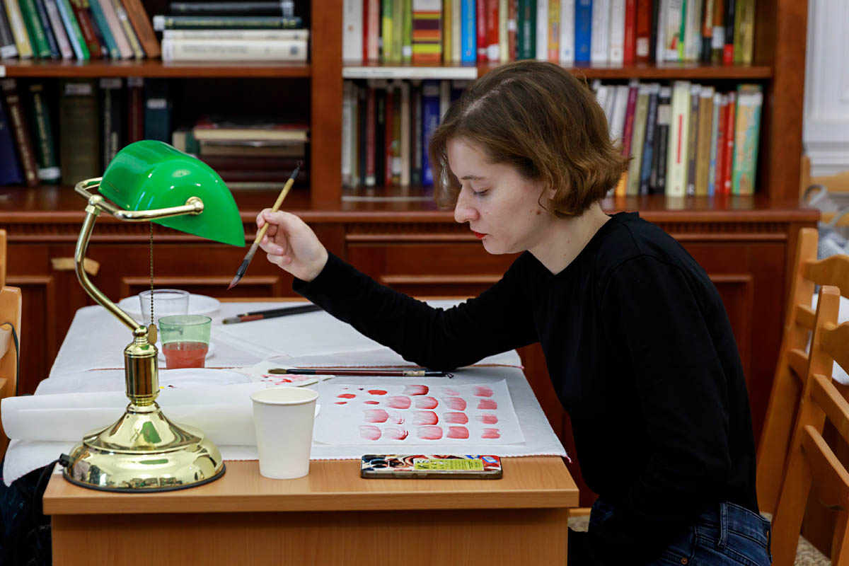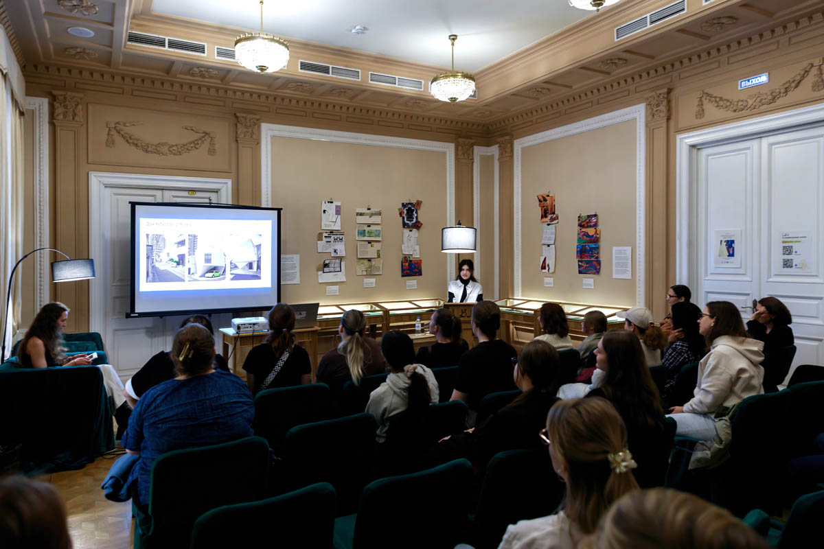 Художница Диана Некрасова провела занятие по скетчингу на открытом воздухе — его участники изображали экстерьеры здания и фигуры людей. Для многих