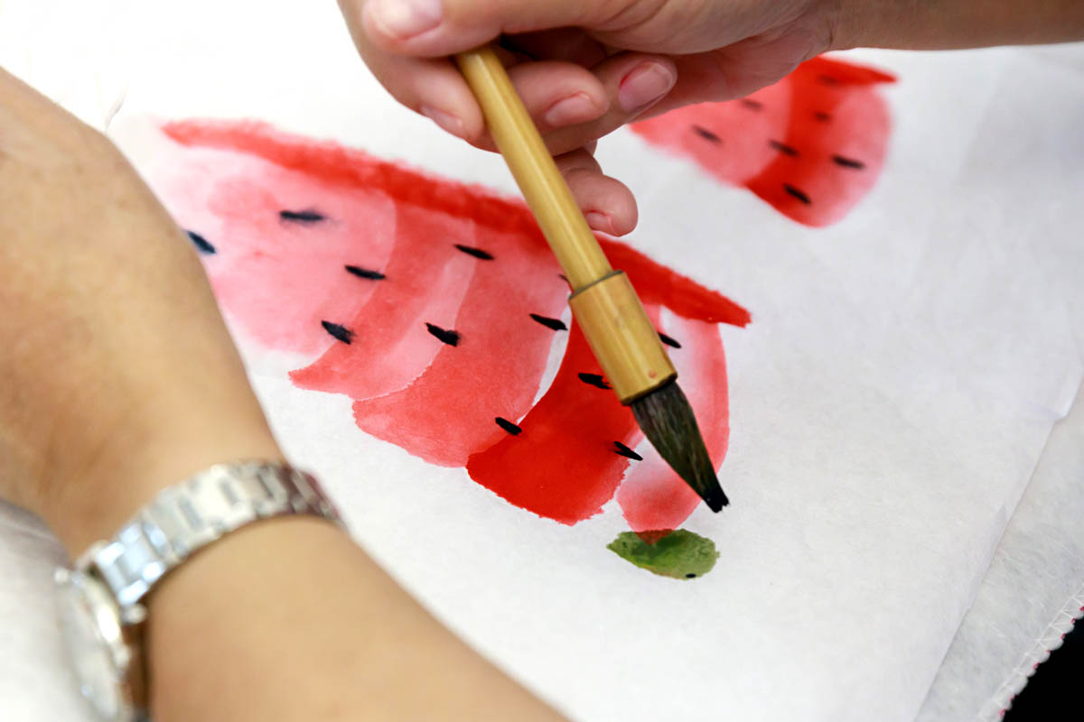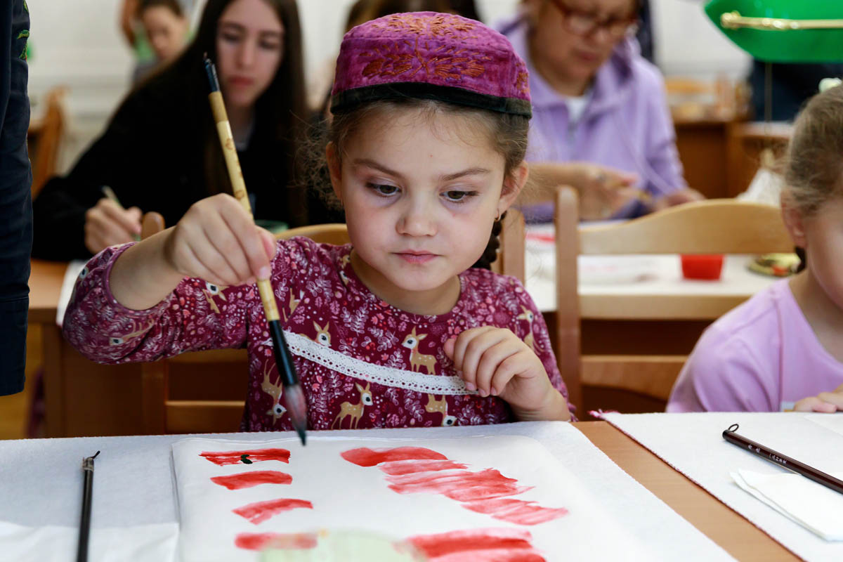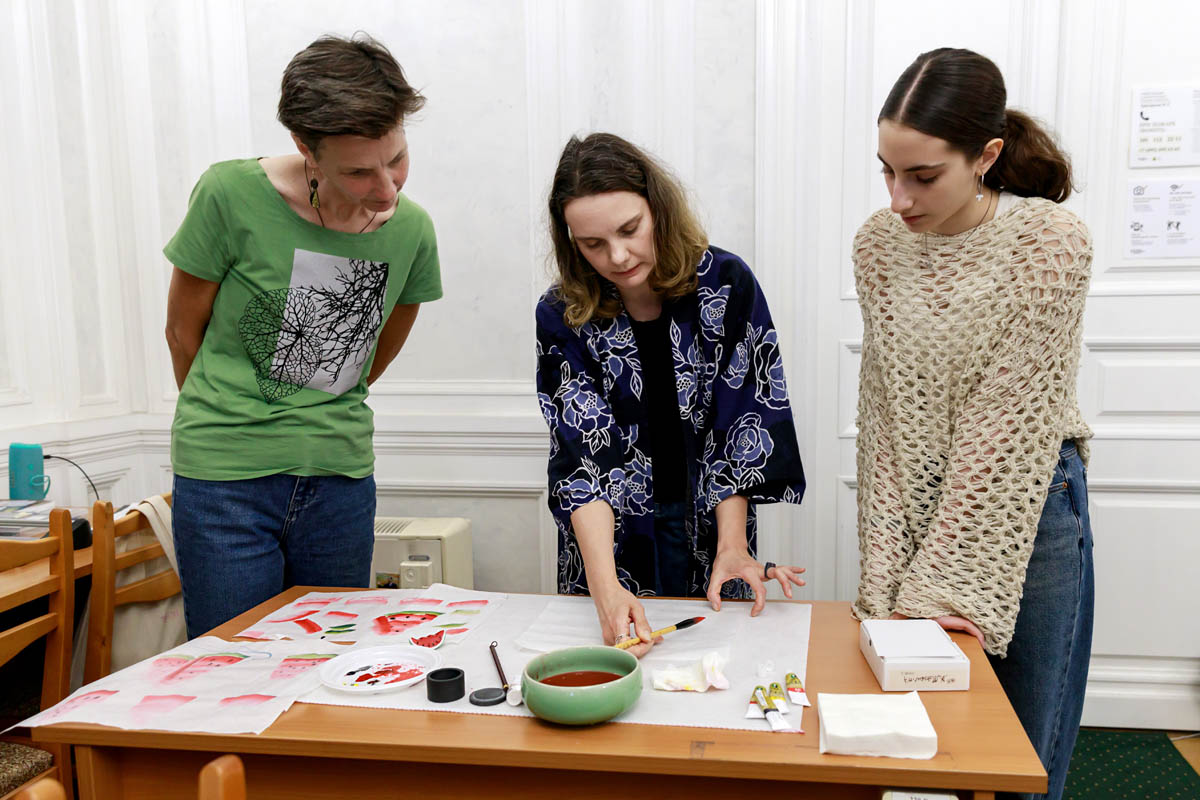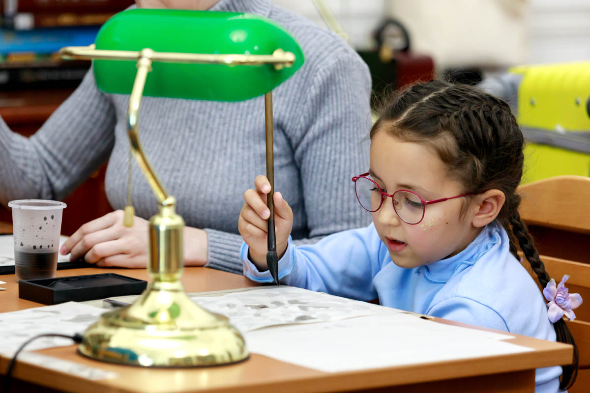 На занятии по китайской каллиграфии гости осваивали написание иероглифа «Любовь» на рисовой бумаге, знакомясь с эстетикой и философией древнего искусства.