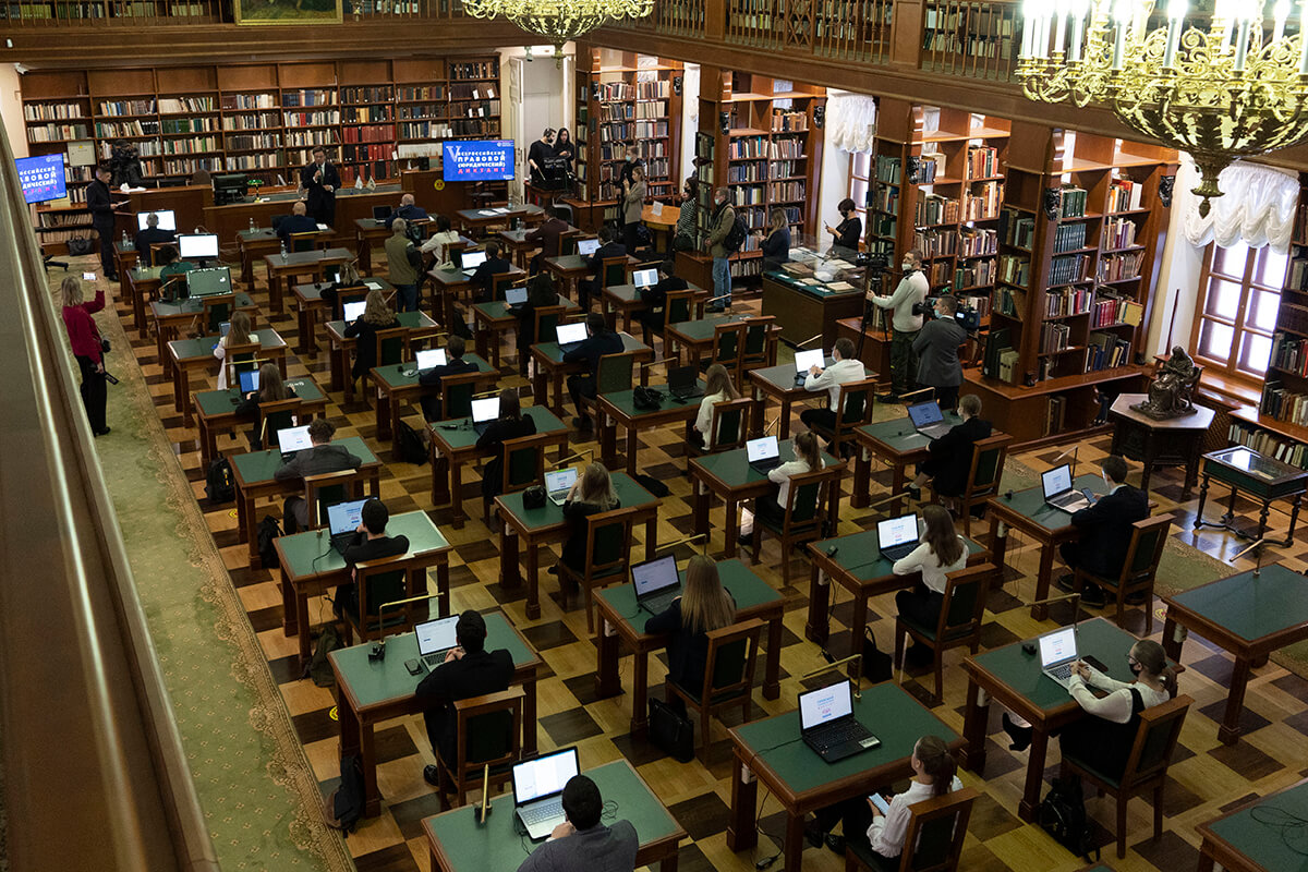 12 декабря в Российской государственной библиотеке прошёл финальный день V Всероссийского правового (юридического) диктанта . Акция стартовала 4 декабря и завершилась в День Конституции. В 2021 году Правовой диктант написали более 900 тысяч человек. В акции принял участие генеральный директор РГБ Вадим Дуда.