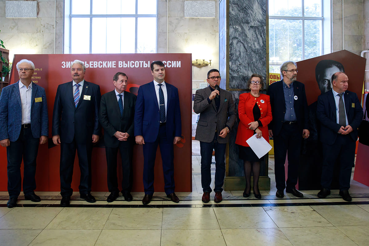 политики Минобрнауки России Кирилл Борисов, президент Биографического института Александра Зиновьева, президент Общества «Россия — Германия» Владимир Гринин, председатель партии «Российский общенародный союз» Сергей Бабурин, заместитель директора Государственного музея истории российской литературы имени В. И. Даля, заведующий музейным центром «Московский дом Достоевского», официальный биограф философа Павел Фокин, член Совета при Президенте РФ по развитию гражданского общества и правам человека, профессор Национального исследовательского университета «Высшая школа экономики» Леонид Поляков, исполняющий обязанности декана философского факультета Московского государственного университета имени М. В. Ломоносова Алексей Козырев, директор издательства