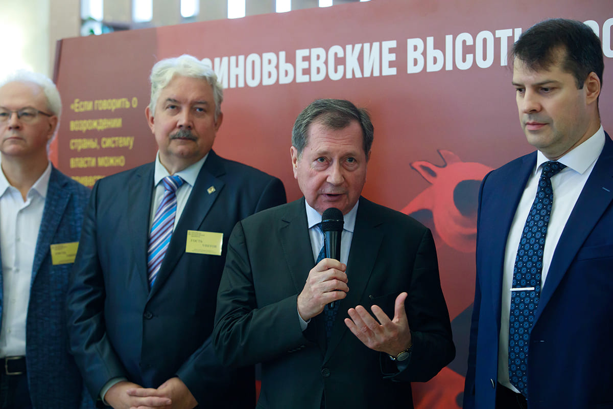 «Столетие, которое отмечается в этом году, — это начало большого зиновьевского пути. Столетие — это не завершение, столетие — это дорога к тысячелетию. Его труды и его книги очень значимы для России, для которой самое главное слово — „суверенитет“. Зиновьев и сам про себя говорил „я сам себе суверенное государство“. Путь выращивания личного суверенитета, который предлагал Зиновьев, сегодня чрезвычайно важен. И выставка в Ленинке — это одно из самых правильных решений, потому что это место, в котором содержится совокупный разум: российский и всемирный», — подчеркнул в своём выступлении Леонид Поляков, ученик Александра Зиновьева.
