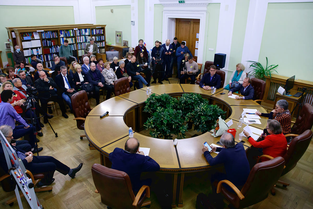В заседании круглого стола приняли участие Ольга Зиновьева, Леонид Поляков, методолог, член Зиновьевского клуба международной медиагруппы «Россия сегодня» Искандер Валитов, методолог, доктор психологических наук, директор Института опережающих исследований и управления человеческими ресурсами имени Е. Л. Шифферса Юрий Громыко, методолог, кандидат технических наук, доктор экономических наук, заведующий кафедрой концептуального анализа и проектирования Московского