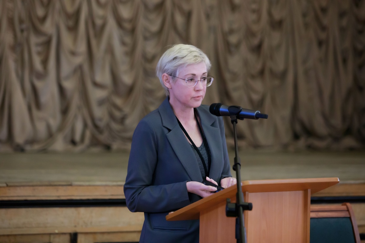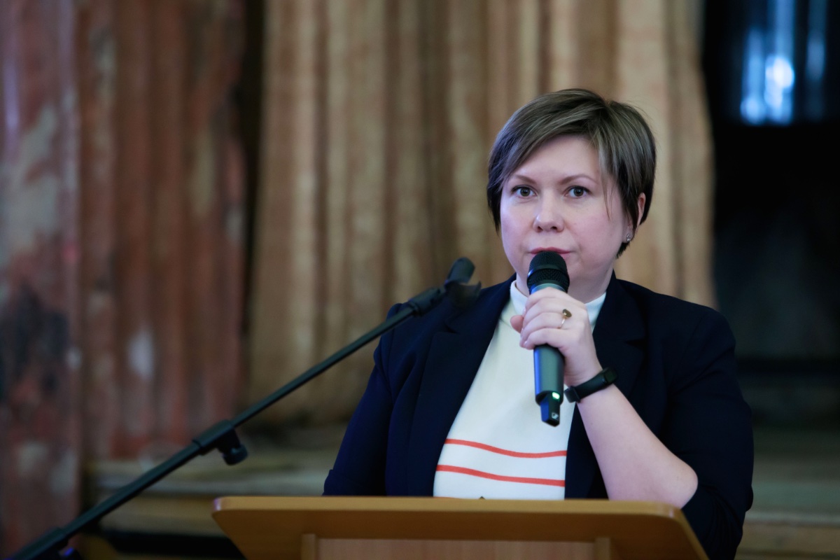 зачитывает приветственное слово от генерального директора РГБ Вадима Дуды. Фото: Мария Говтвань, РГБ