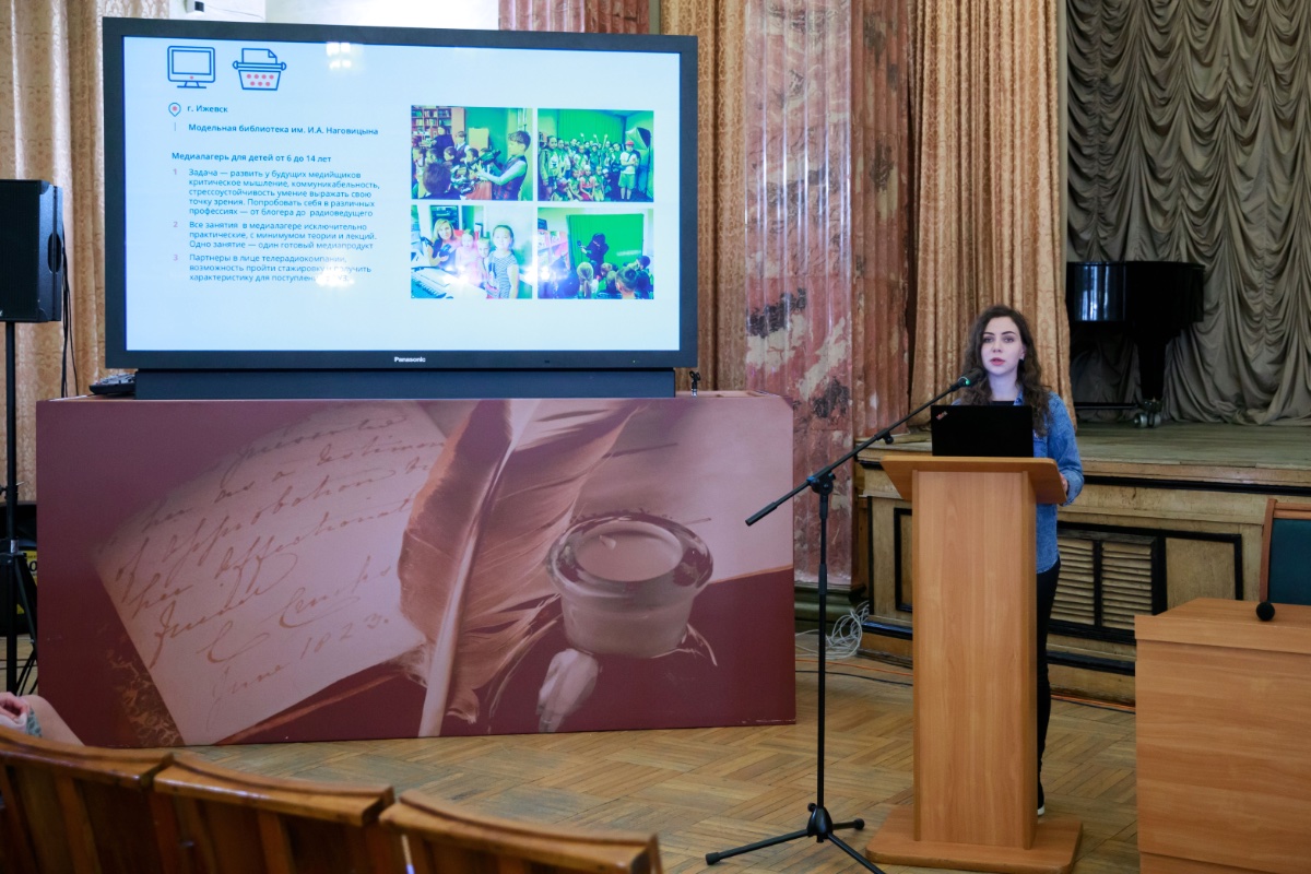 общедоступного музея, от которого ведёт свою историю РГБ. Современную деятельность Библиотеки и её новые проекты осветили в докладах «Библиотека сегодня: взаимодействие бизнеса, общества и государства», «Всероссийский мониторинг кадровой потребности в библиотечной сфере. Первые итоги», «Образовательные программы Российской государственной библиотеки», «Специализированные коллекции НЭБ в помощь профессионалам», «Презентация проекта „Гений места“. Развитие креативных индустрий на базе библиотек».