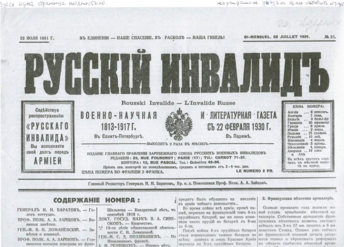 Один из экспонатов выставки — вырезка из газеты «Русский инвалид». 1931