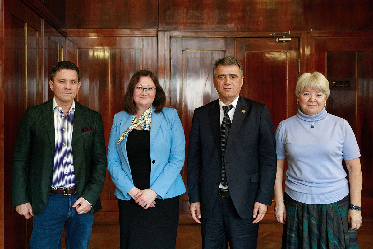 Генеральный директор РГБ Вадим Дуда , генеральный директор Национальной библиотеки Беларуси Оксана Книжникова , директор Национальной библиотеки Таджкистана Джумахон Файзализода , заместитель генерального директора РГБ по хранению и обслуживанию Ольга Серова . Фото: Марии Говтвань