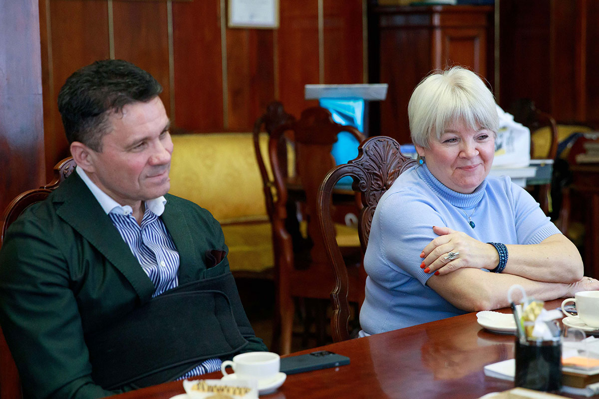 На встрече с генеральным директором Ленинки Вадимом Дудой и заместителем генерального директора по хранению и обслуживанию Ольгой Серовой коллеги обменялись мнениями о возможных совместных проектах, обсудили современные вызовы для библиотечной сферы, затронули тему миссии национальных библиотек стран СНГ.