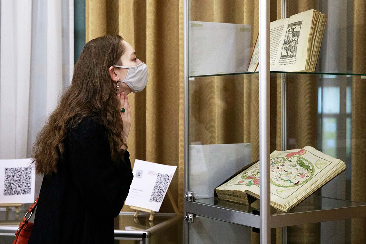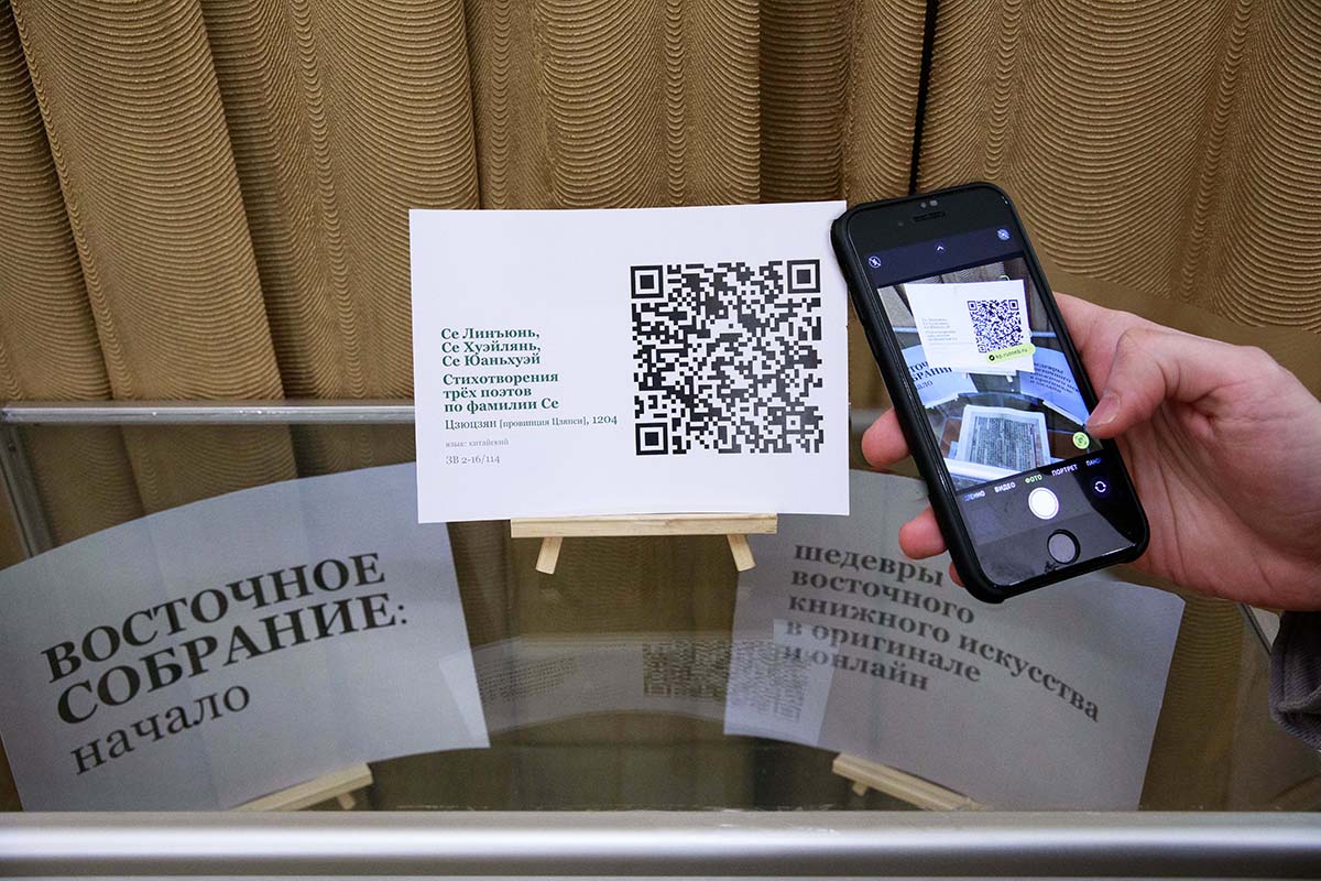Рядом с каждым книжным экспонатом на выставке расположен QR-код, перейдя по которому можно открыть отсканированную версию книги на портале Национальной электронной библиотеки .