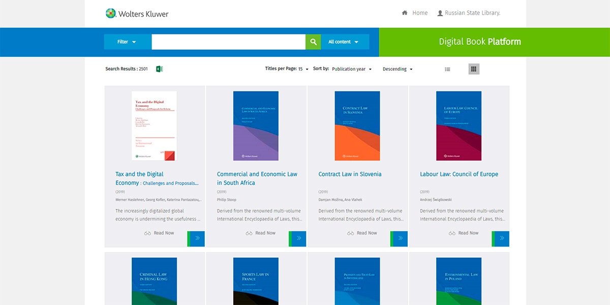 До конца мая 2019 года в РГБ открыт тестовый доступ к коллекции англоязычных книг по юриспруденции издательства Wolters Kluwer.