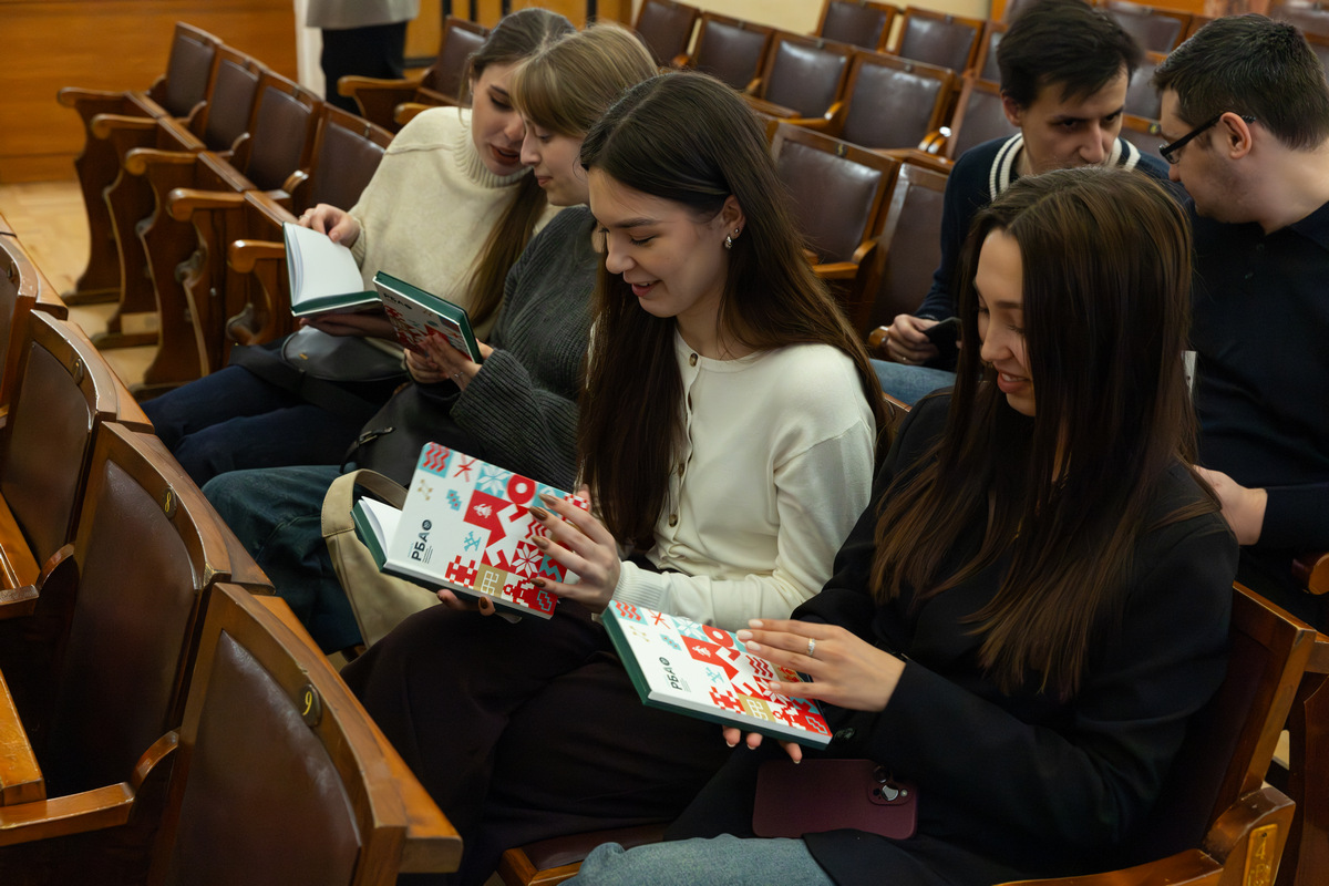 Затем студентам предстояли две тематические встречи, первая из которых была приурочена к празднованию 80-летия Победы в Великой Отечественной войне. Инна Малахова, заведующая отделом координации приоритетного обслуживания органов государственной власти РГБ, провела лекцию-презентацию «Деятельность РГБ в годы Великой Отечественной войны», раскрыла малоизвестные страницы истории, подчеркнув непрерывность работы главной библиотеки страны в суровые военные годы, вклад её сотрудников в поддержку народного духа.
