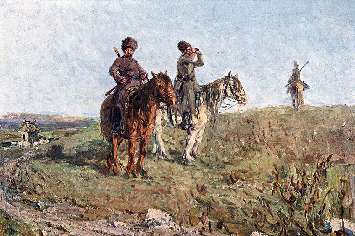 Репродукция картины Виталия Тихова «Казаки на разводке» // Художественный альбом «Манджурия»