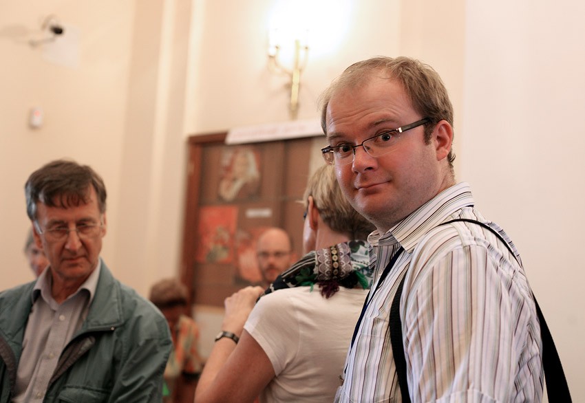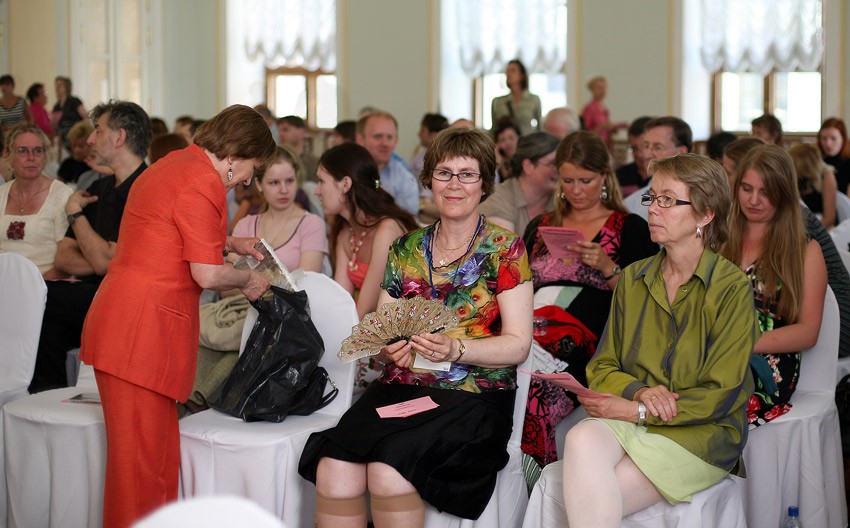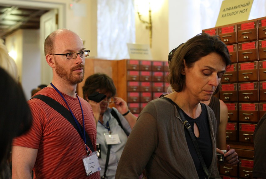 На следующий день здесь же, в старинном особняке библиотеки, участников конгресса ждало знакомство с фондами отдела нотных изданий и звукозаписей. Прежде чем попасть на эту экскурсию, наши зарубежные коллеги побывали в Алмазном фонде Кремля. Но даже богатейшие впечатления от сокровищницы русских царей не смогли затмить увиденное в Доме Пашкова. Здесь уставшие после насыщенного дня люди погрузились в атмосферу традиционно присущего Ленинке гостеприимства. Вечерний чай с пирожками, неспешное знакомство с фондами, непринужденное общение. Кто-то, заметив афишу «Волшебной флейты» Моцарта, тут же напел солнечный мотив.