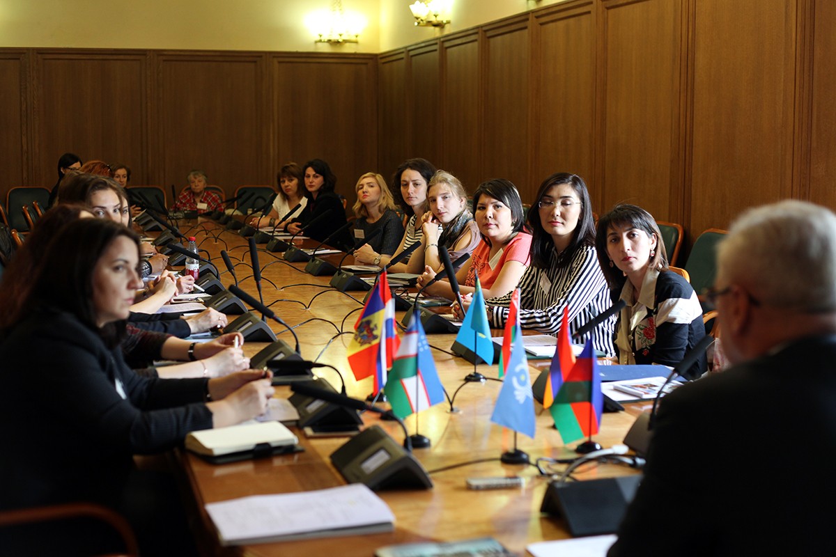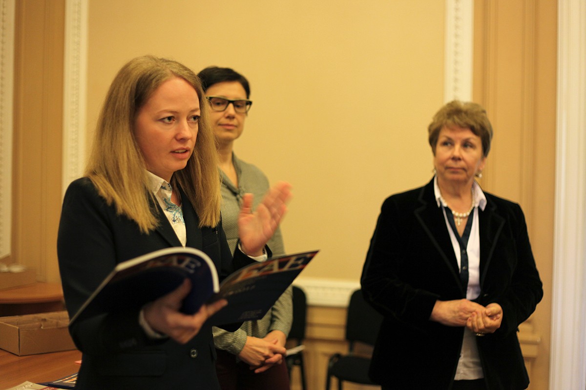 Нелли Олеговна Петкова , руководитель отдела внешних коммуникаций Межгосударственного фонда гуманитарного сотрудничества государств — участников СНГ. Зал заседаний РГБ