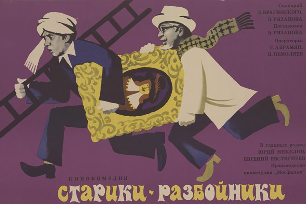 «Старики-разбойники». В главных ролях: Юрий Никулин, Евгений Евстигнеев, Ольга Аросева, Георгий Бурков, Андрей Миронов.