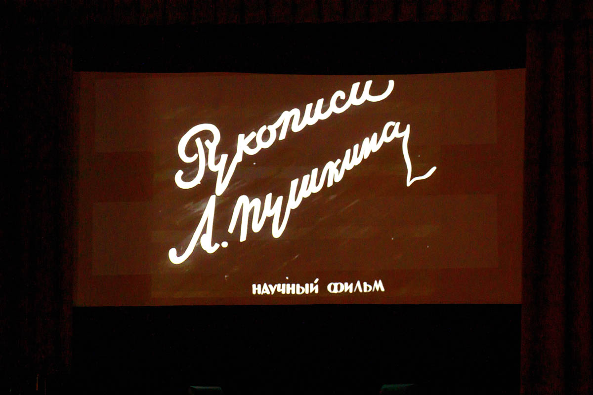На первом кинопоказе в РГБ зрители увидели фильм Сергея Владимирского и Анатолия Егорова «Рукописи Пушкина» (1937). Авторы картины вместе со знаменитым литературоведом и историком кино Наумом Клейманом на примере черновика поэмы «Медный всадник» разобрали, как поэт работал над своими произведениями, выбирал лучшие формулировки.