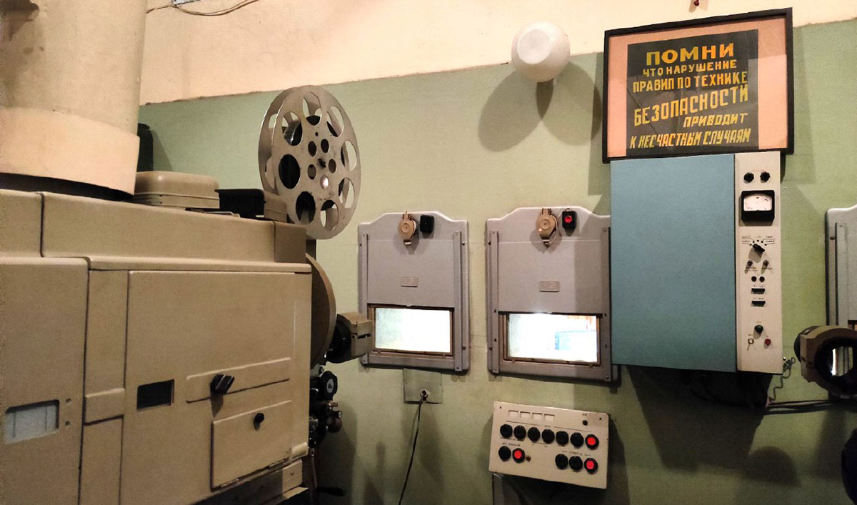 1970–1990-х годов, её устройством, бытом киномеханика эпохи плёночного кино. Посетителям расскажут об основных форматах кинолент, о принципах записи звука в кинофильмах. Они увидят, как работает киноаппаратура — легендарная киноустановка23-КПК Ленинградскогооптико-механического объединения.