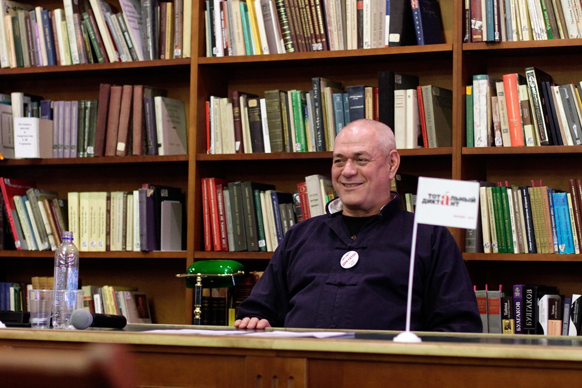 Российская государственная библиотека во второй раз стала одной из площадок образовательной акции «Тотальный диктант». В этом году текст диктанта в Доме Пашкова прочитал журналист, главный редактор радиостанции «Говорит Москва» Сергей Доренко. Все, кто захотел проверить свою грамотность, собрались в Румянцевском зале.