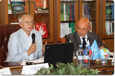 Доктор экономических наук, профессор МГУ Сергей Бобылев и директор информационного центра ООН в Москве Александр Горелик. |