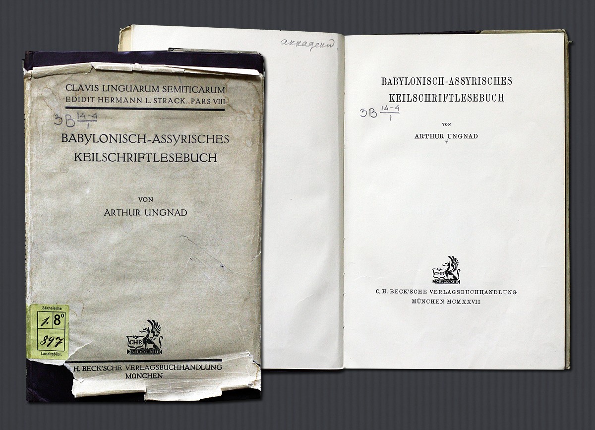 Клинописные тексты вымершего ассирийского диалекта аккадского языка с грамматическими очерками представлены на выставке в работе немецкого ассириолога Артура Унганда (Babylonisch-Assyrisches Keilschriftlesebuch / von A. Ungnad. — München, 1927). Шифр хранения ЦВЛ РГБ: ЗВ 14-4/1.