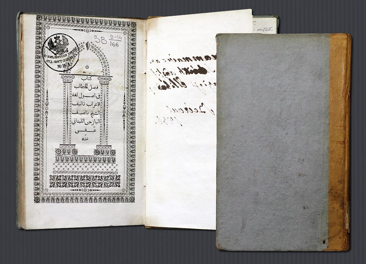 Грамматика арабского языка — Аль-Йазижди, Насиф. Китаб фасли-ль-хытаб фи усуль люгат аль-аараб. — Бейрут: Типография Масихийя, 1836. Шифр хранения ЦВЛ РГБ: ЗВ 9-14/166.