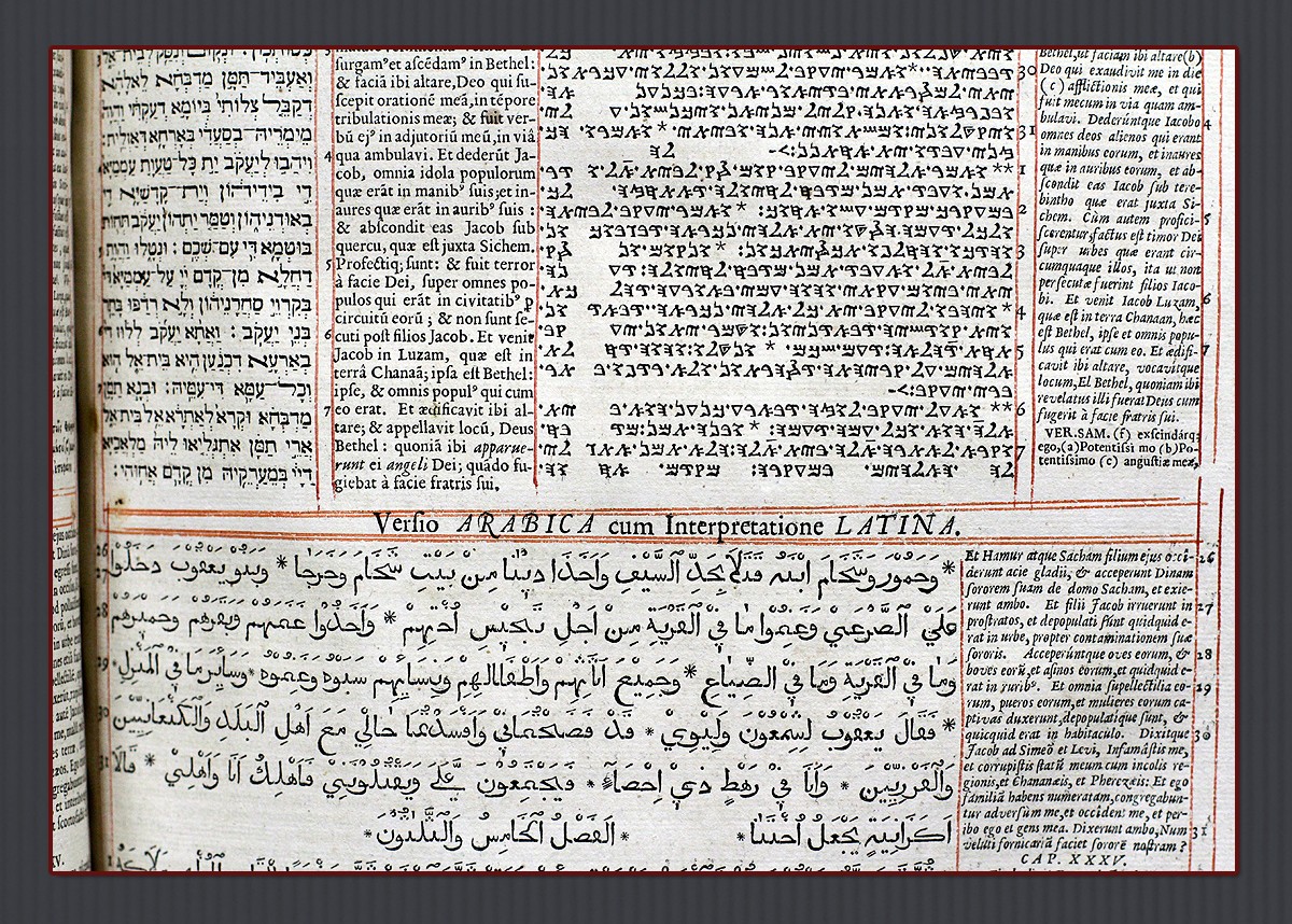 И наконец, вашему вниманию предлагается многоязычная Библия — Biblia Sacra Polyglotta. Полиглоттами (от греч. πολύ — «много», и γλώττα — «язык») называют издания Библии, в которых рядом с текстом помещён его перевод на несколько языков. Полиглотта позволяет наглядно и построчно сопоставлять тексты на языке оригинала с различными переводами, что весьма удобно для изучения истории библейского текста, его филологической и богословской интерпретации, а также для учебных целей.